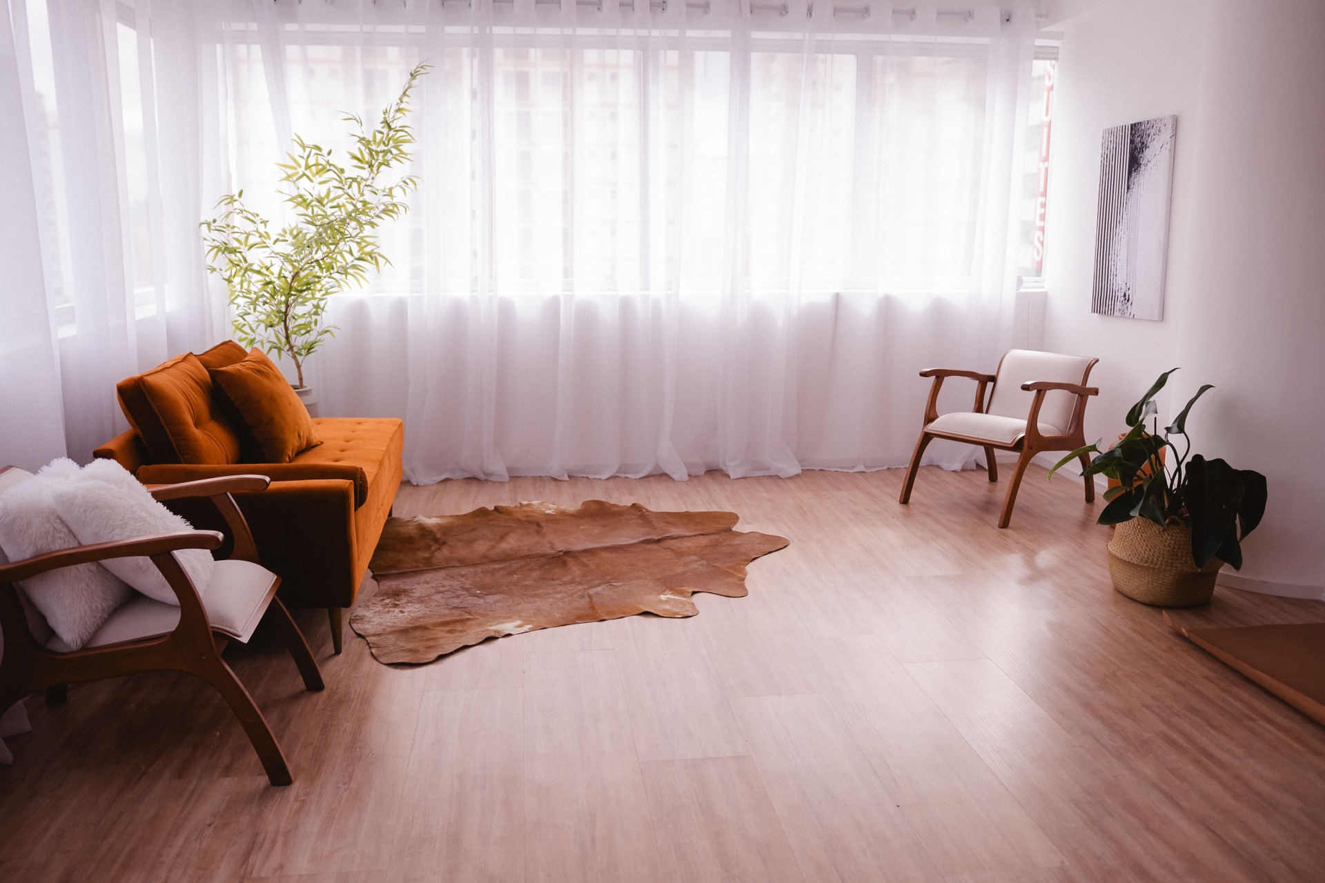 O espaço tem um conceito aconchegante, que traduz elegância e sofisticação. Uso apenas da luz natural, que entra com suavidade, desenhando contornos leves.