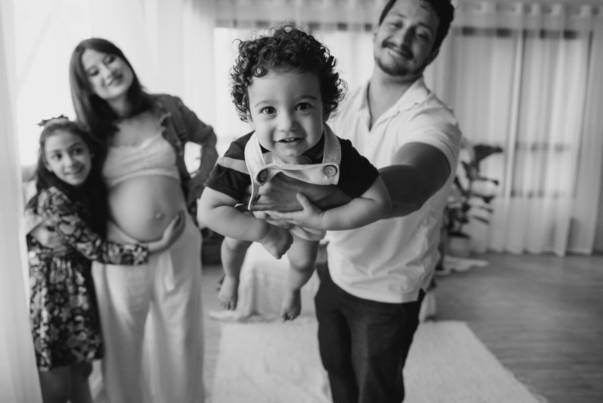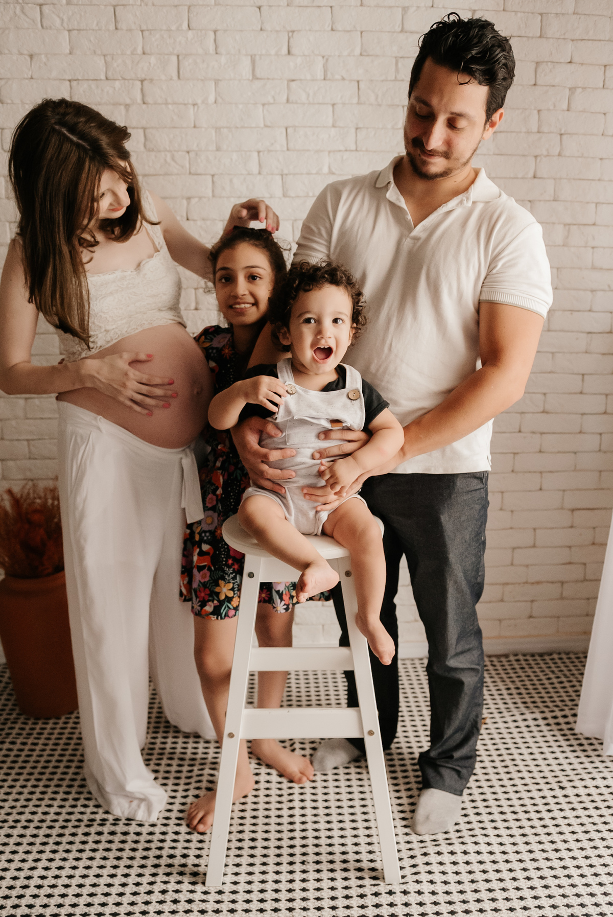 Esse é um dos casais mais conectados que já fotografei, os olhares, o carinho, os gestos, a troca, tudo transborda e é visível nas fotos. Uma família cheia de amor que cresceu de repente, era só a Alice e em dois anos, já veio o Levi e a Cecília, com apenas 1 ano e 3 meses de diferença. Registrei as duas gestações e sempre a mesma intensidade de amor em família.