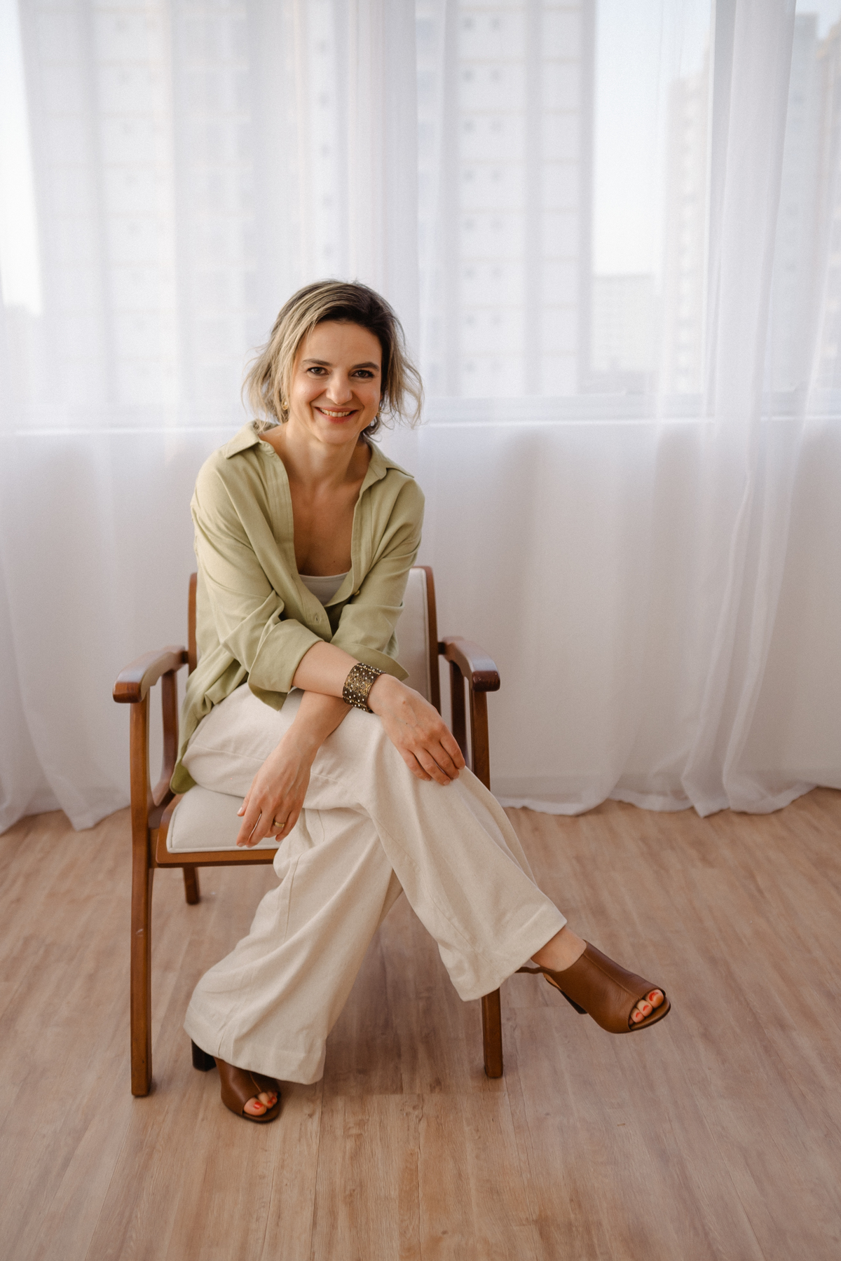 Tudo foi pensado para traduzir quem ela é — na escuta, no silêncio, na luz que oferece ao outro.