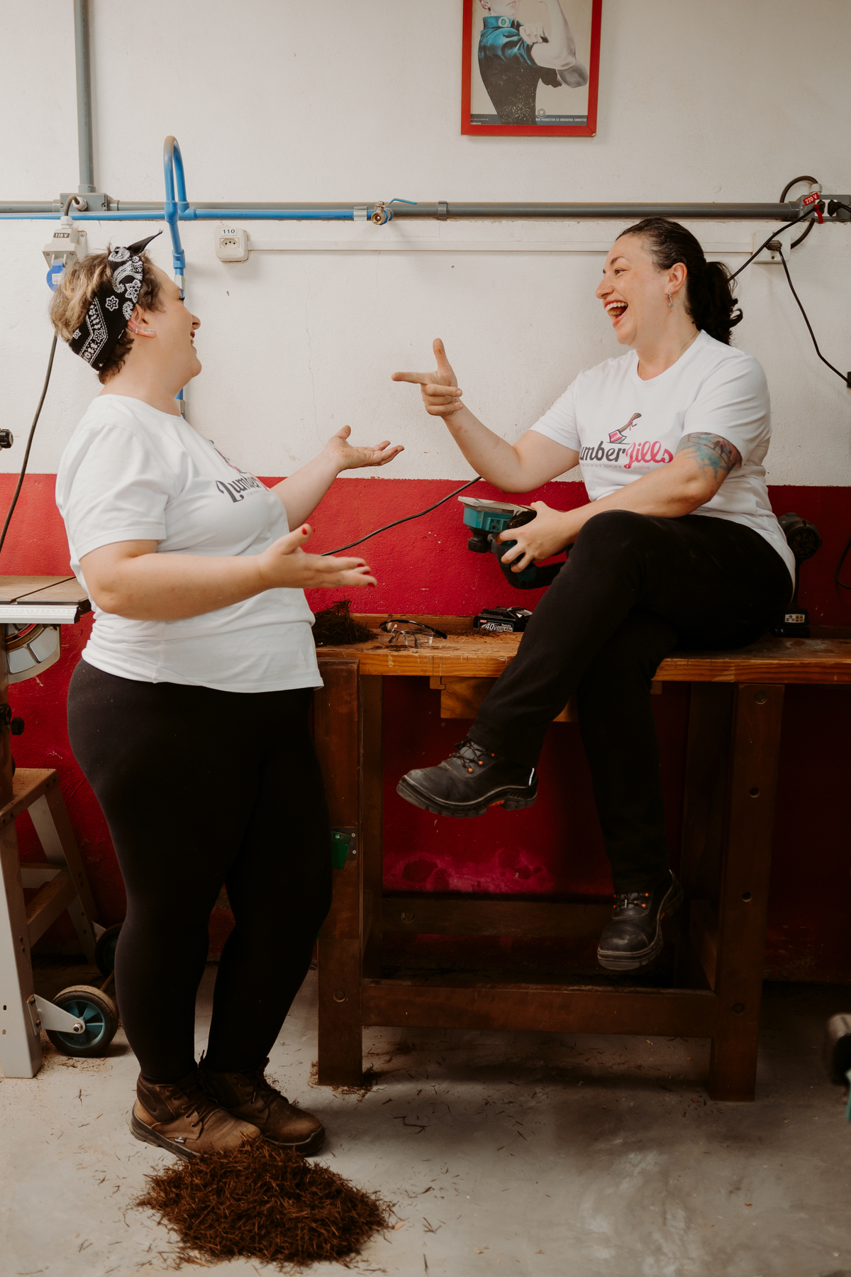 Cheias de humor, criatividade e atitude, esse ensaio nasceu no lugar onde tudo acontece: a própria marcenaria delas.